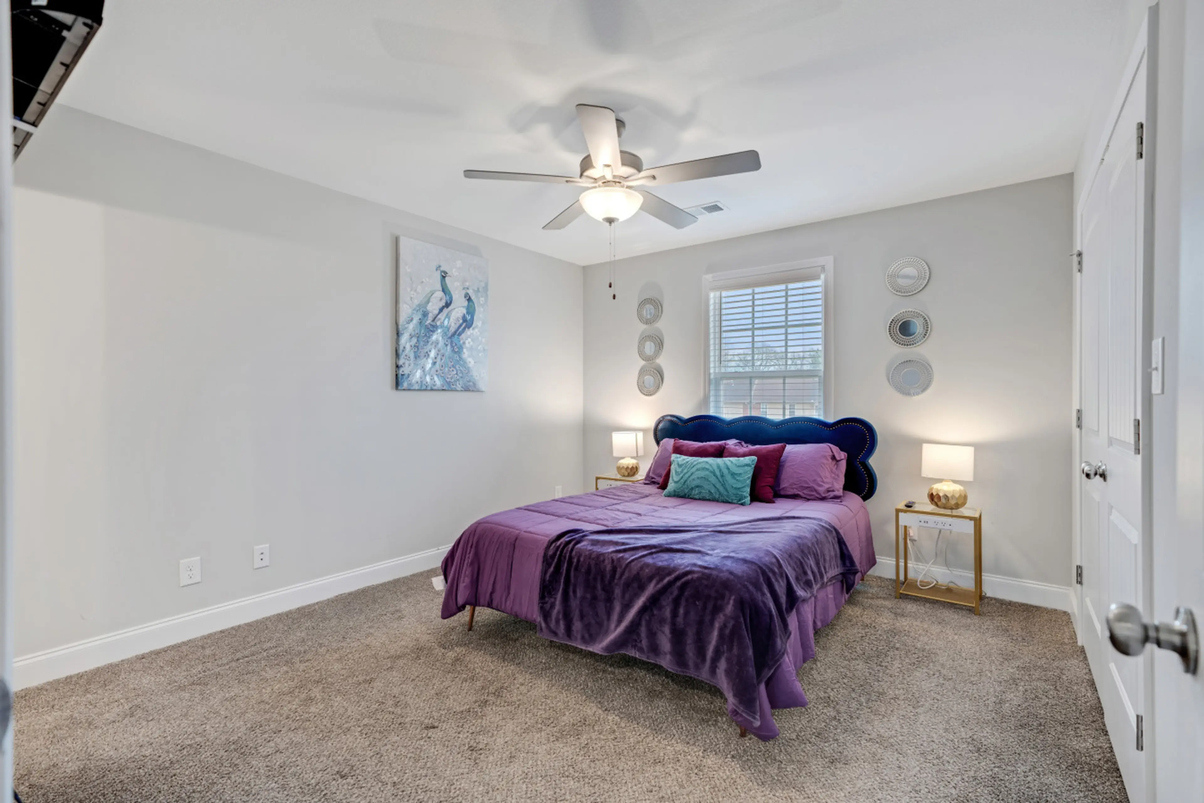 Your contemporary living room where bold turquoise blends with subtle hints of rich purple, vibrant yet harmonious space throughout the house. You’ll love sinking into the spacious couch after a long day of work or exploring the city. Enjoy the stylish decor, refreshing atmosphere, and a fully stoc...